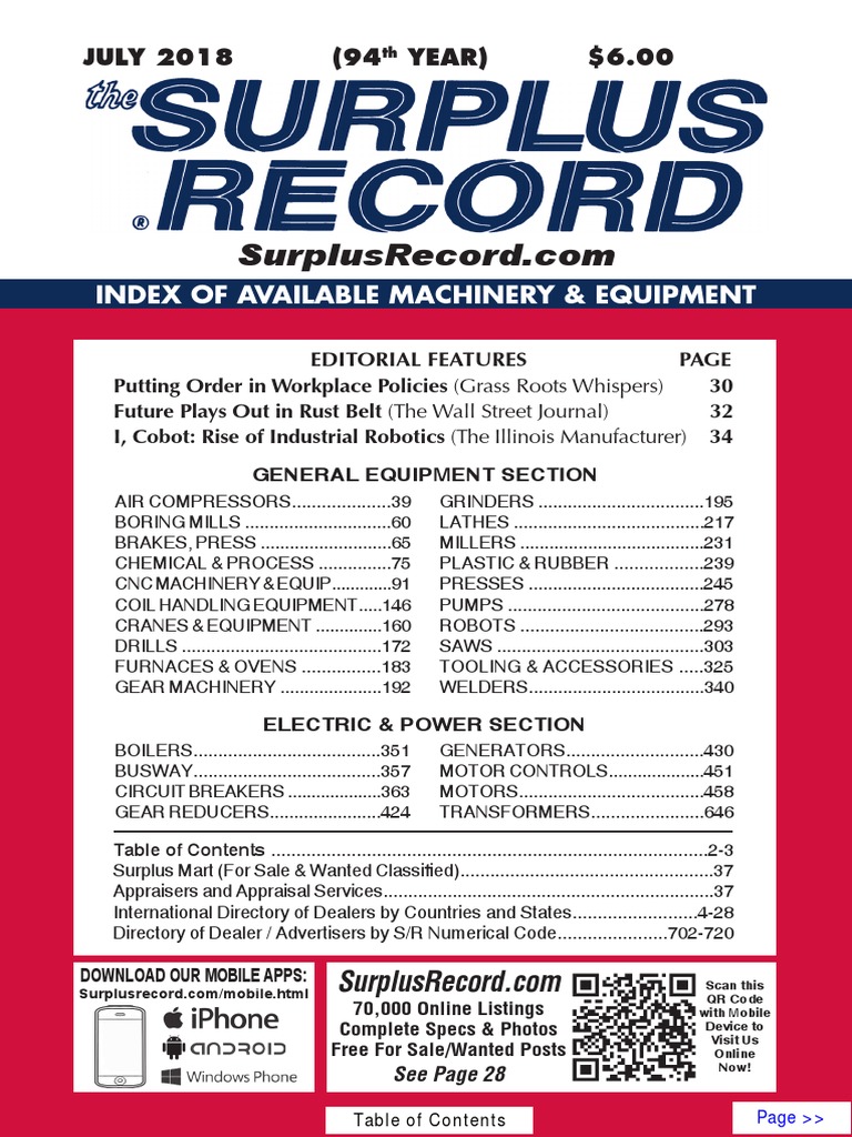 July 2018 Surplus Record Machinery Equipment Directory Grinding Abrasive Cutting Drill